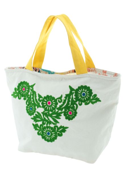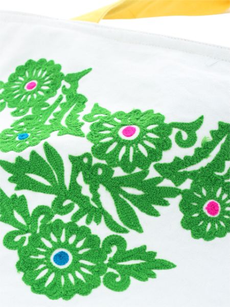 サイズ: 38×24×14cm 持ち手35cm 素材: 表地 綿 刺繍部分 アクリル 裏地 ホ゜リエステル 商品仕様: メキシコの刺繍の洋服の胸元のデザインをトートバッグに閉じ込めました。